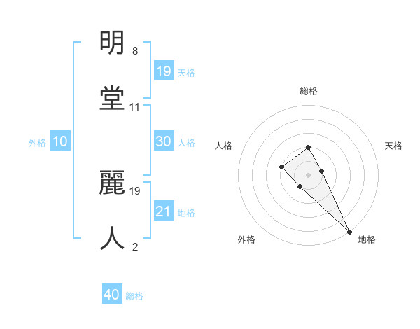 明堂 麗人さんの総格は40画の2点!