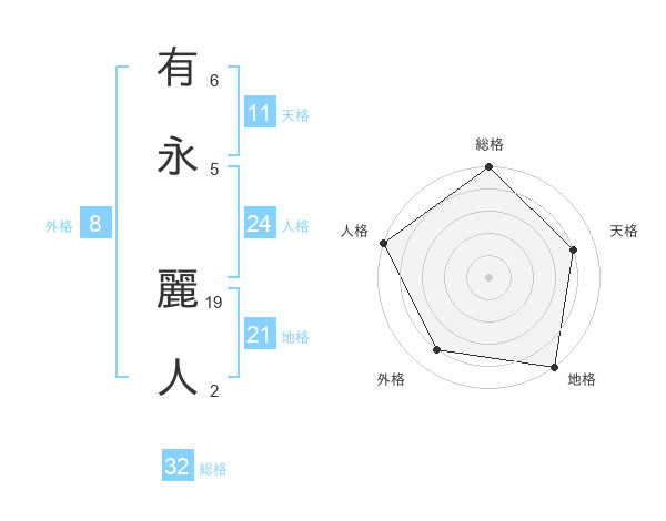 有永 麗人さんの総格は32画の5点!