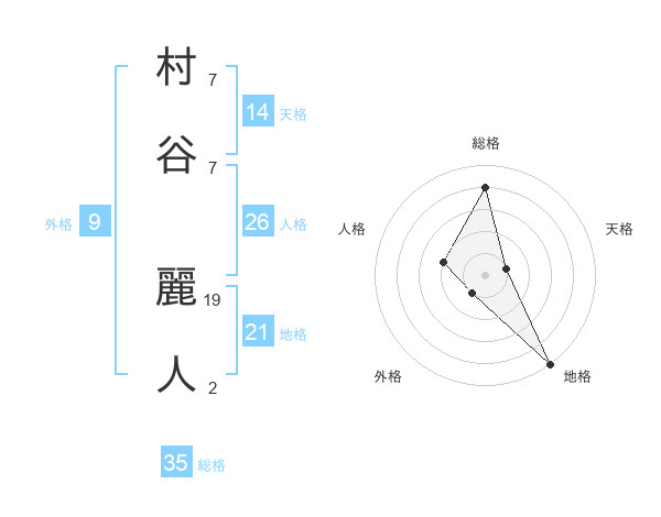 村谷 麗人さんの総格は35画の4点!