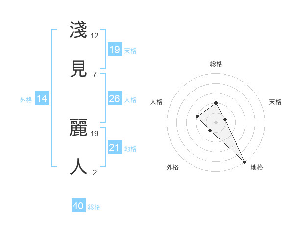 淺見 麗人さんの天格は19画の1点!
