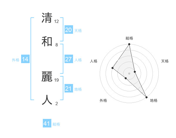 清和 麗人さんの天格は20画の1点!