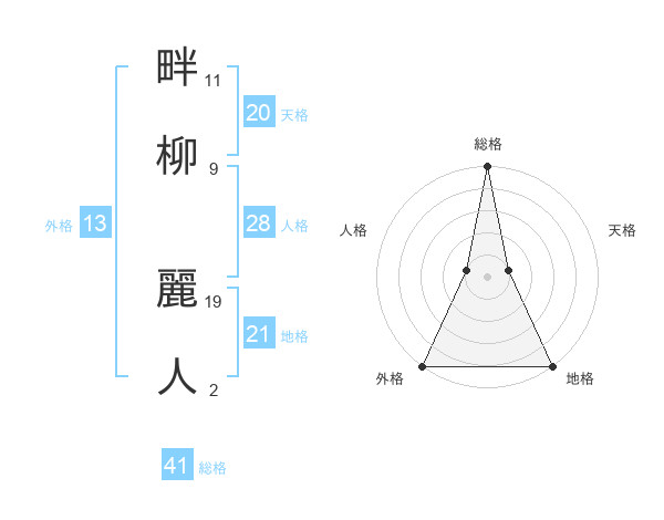 畔柳 麗人さんの外格は13画の5点!