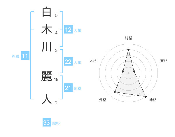 白木川 麗人さんの総格は33画の4点!