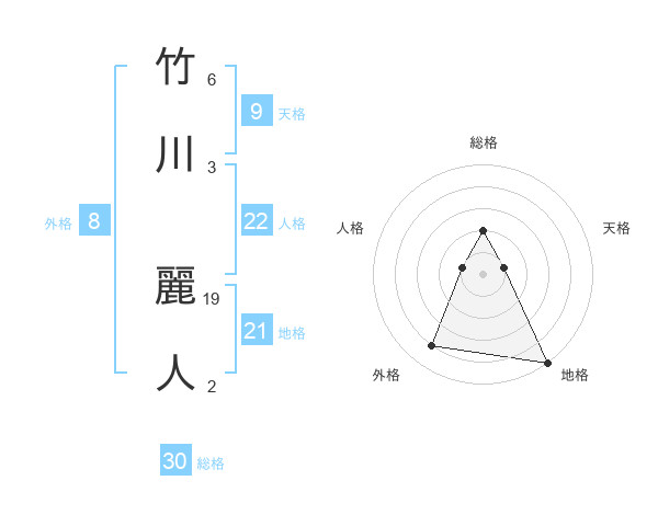 竹川 麗人さんの総格は30画の2点!