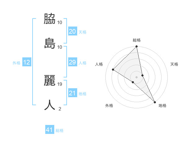 脇島 麗人さんの天格は20画の1点!