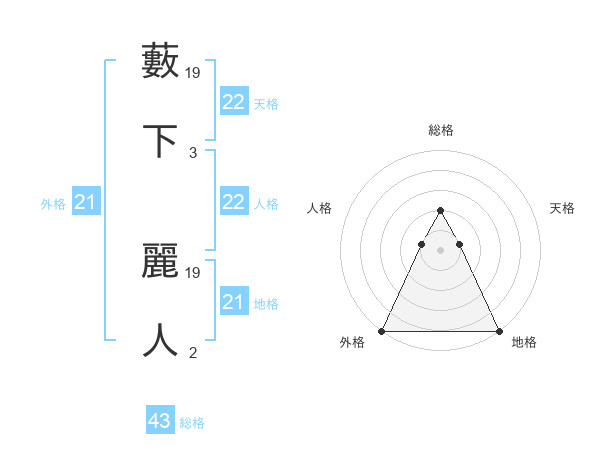 藪下 麗人さんを姓名の画数から五運を鑑定