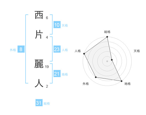 西片 麗人さんの総格は31画の5点!