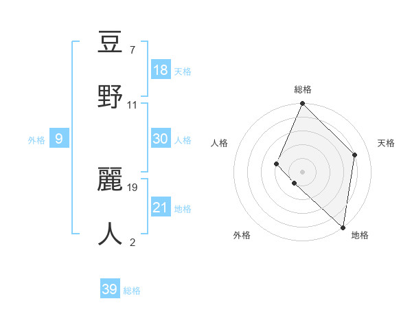 豆野 麗人さんの総格は39画の5点!