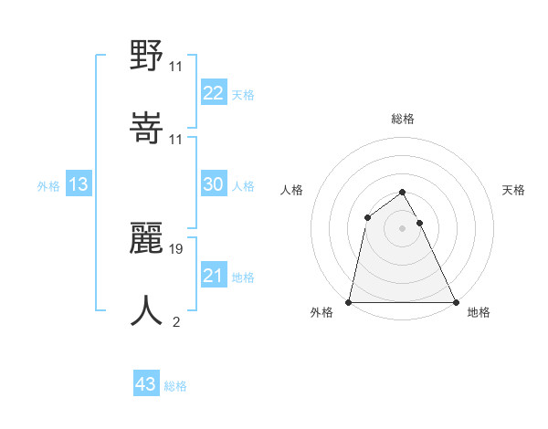 野嵜 麗人さんを姓名の画数から五運を鑑定