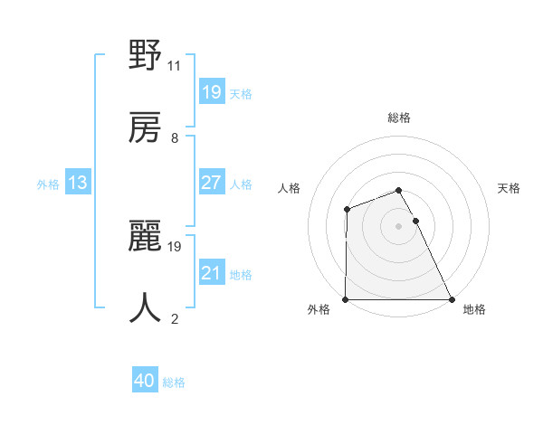 野房 麗人さんの外格は13画の5点!