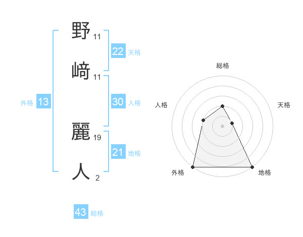 野﨑 麗人さんの外格は13画の5点!