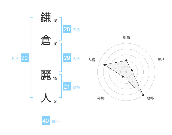 鎌倉 麗人さんの総格は49画の2点!