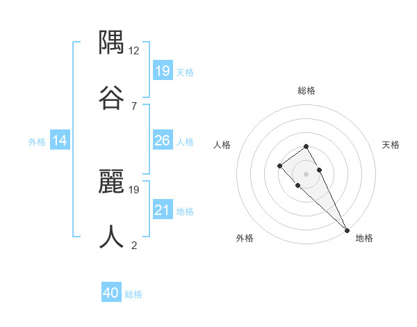 隅谷 麗人さんの総格は40画の2点!