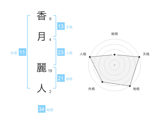 香月 麗人さんの総格は34画の2点!