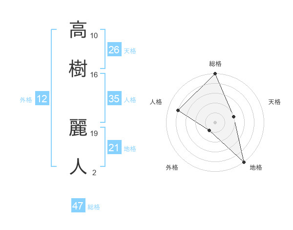高樹 麗人さんを姓名の画数から五運を鑑定