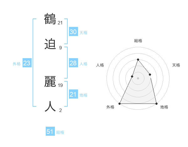 鶴迫 麗人さんを姓名の画数から五運を鑑定