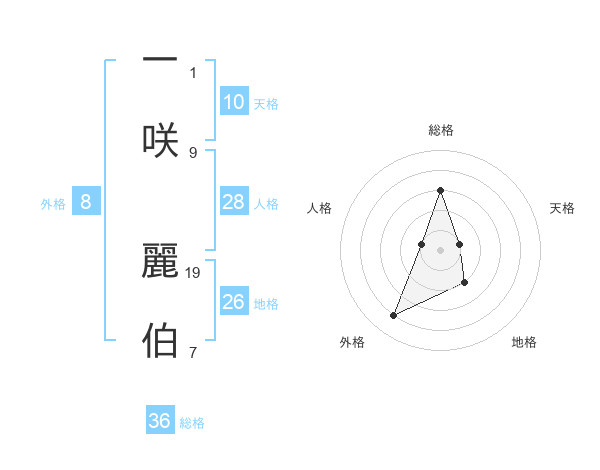 一咲 麗伯さんを姓名の画数から五運を鑑定