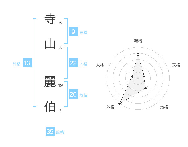 寺山 麗伯さんの総格は35画の4点!