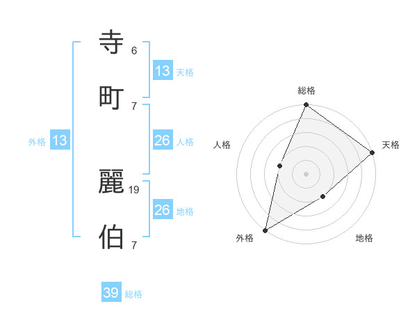 寺町 麗伯さんの総格は39画の5点!