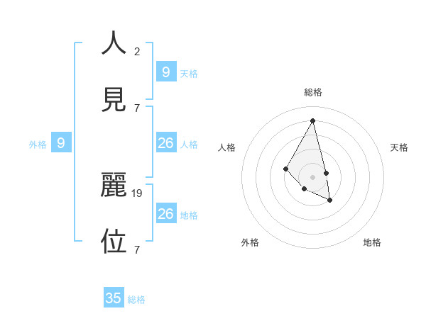 人見 麗位さんの総格は35画の4点!