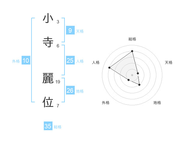 小寺 麗位さんを姓名の画数から五運を鑑定