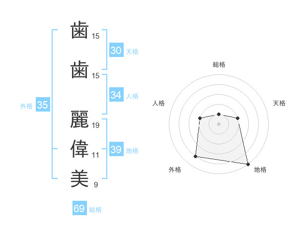 歯歯 麗偉美さんの外格は35画の4点!