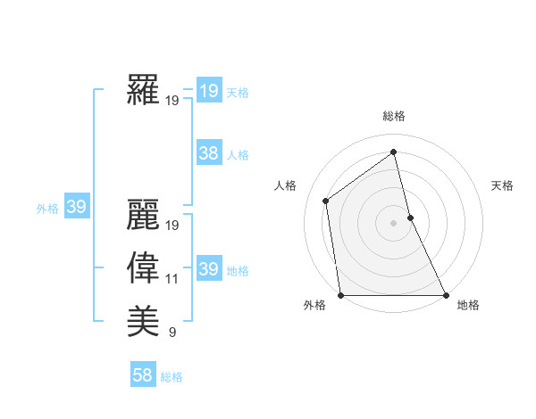 羅 麗偉美さんを姓名の画数から五運を鑑定
