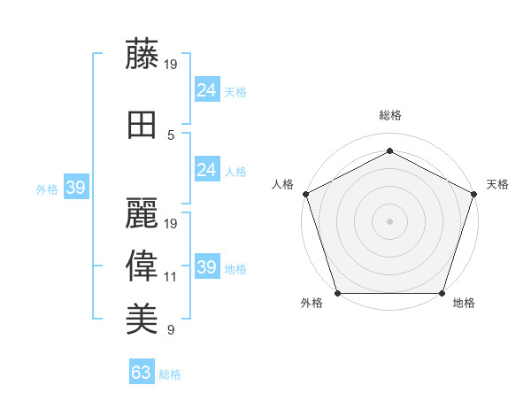 藤田 麗偉美さんの外格は39画の5点!
