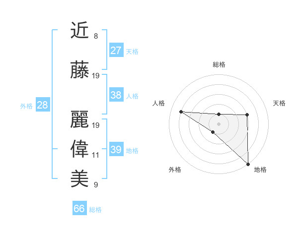 近藤 麗偉美さんを姓名の画数から五運を鑑定