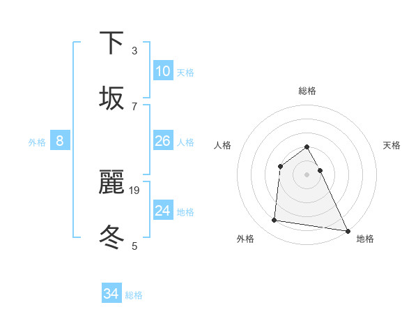 下坂 麗冬さんを姓名の画数から五運を鑑定