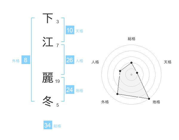下江 麗冬さんの総格は34画の2点!