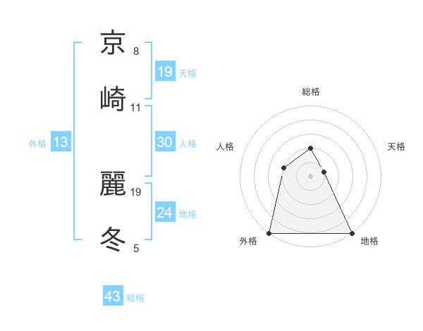 京崎 麗冬さんを姓名の画数から五運を鑑定