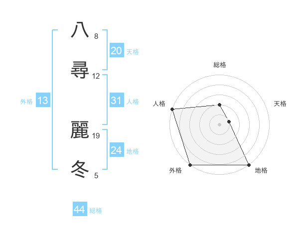 八尋 麗冬さんの総格は44画の2点!