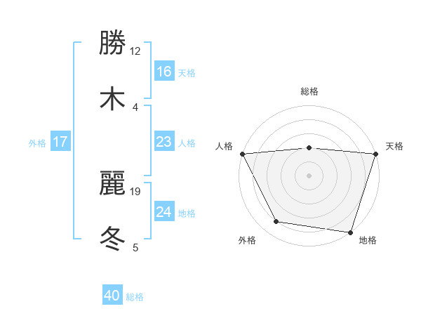 勝木 麗冬さんの外格は17画の4点!