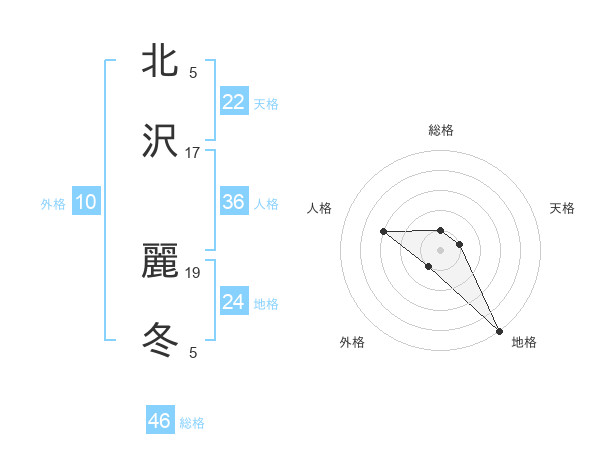 北沢 麗冬さんの総格は46画の1点!