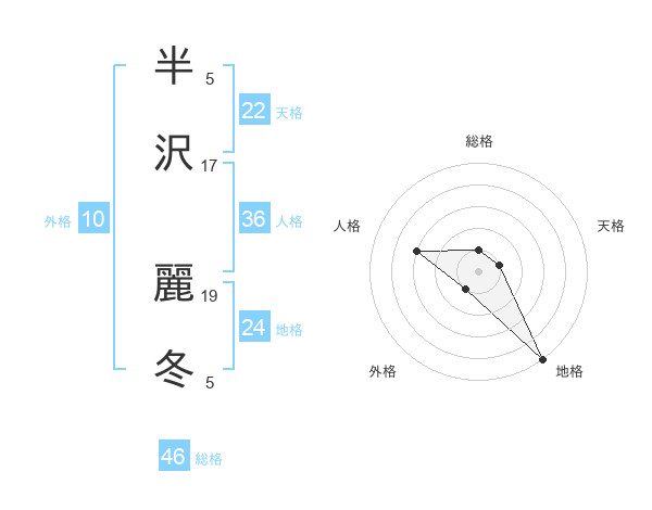 半沢 麗冬さんを姓名の画数から五運を鑑定