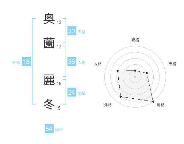 奥薗 麗冬さんの総格は54画の1点!