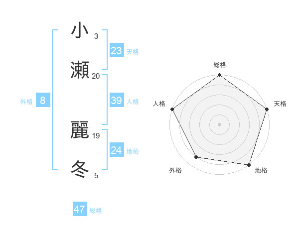 小瀬 麗冬さんの総格は47画の5点!