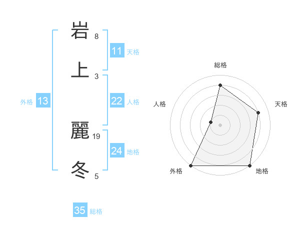 岩上 麗冬さんを姓名の画数から五運を鑑定