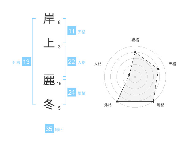 岸上 麗冬さんの総格は35画の4点!
