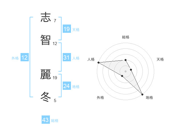 志智 麗冬さんの総格は43画の2点!