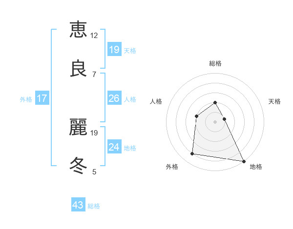 恵良 麗冬さんを姓名の画数から五運を鑑定
