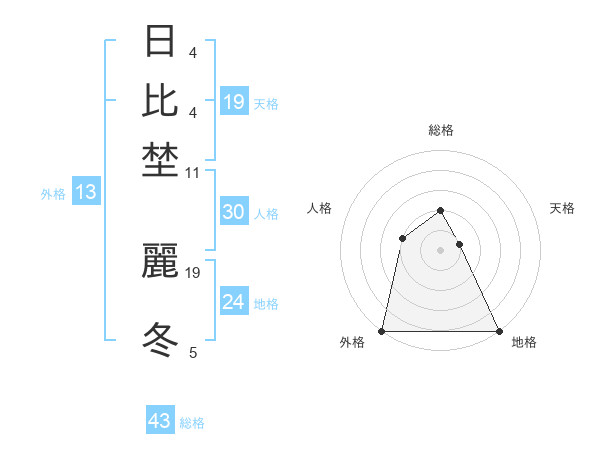 日比埜 麗冬さんを姓名の画数から五運を鑑定