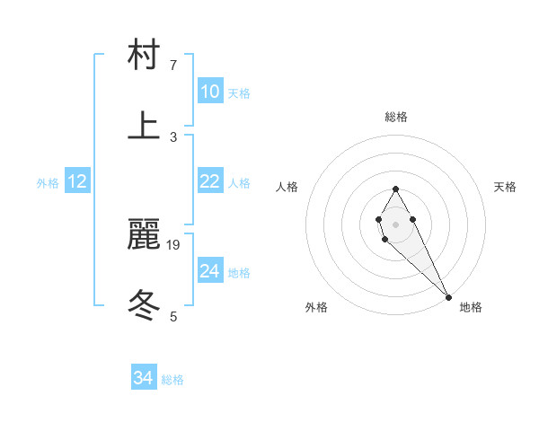 村上 麗冬さんの総格は34画の2点!