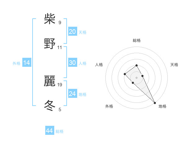 柴野 麗冬さんを姓名の画数から五運を鑑定