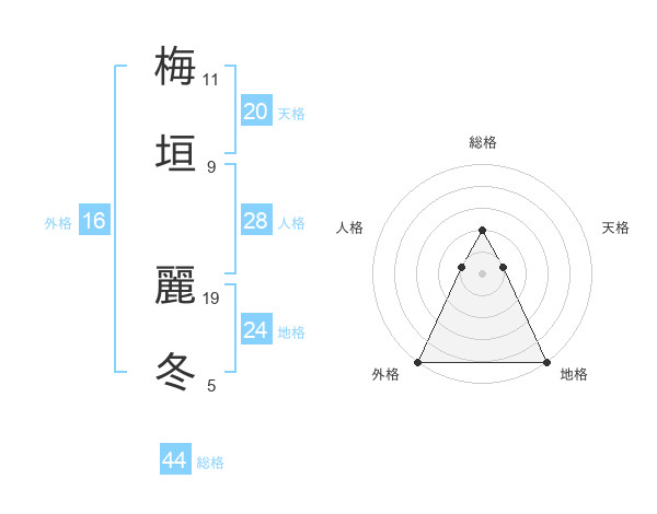 梅垣 麗冬さんの総格は44画の2点!