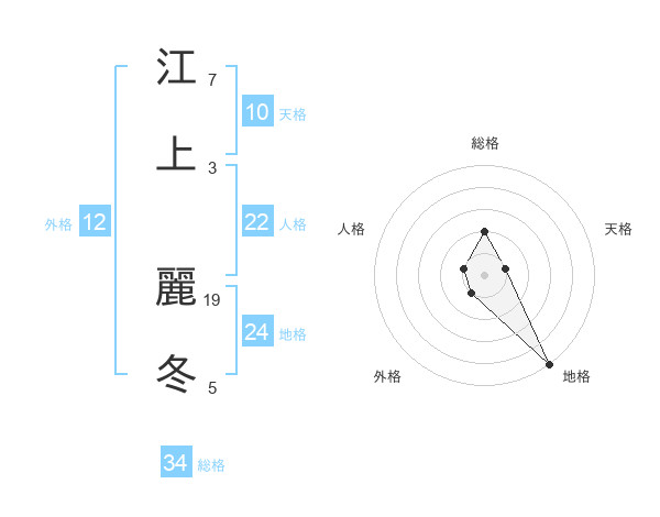 江上 麗冬さんを姓名の画数から五運を鑑定