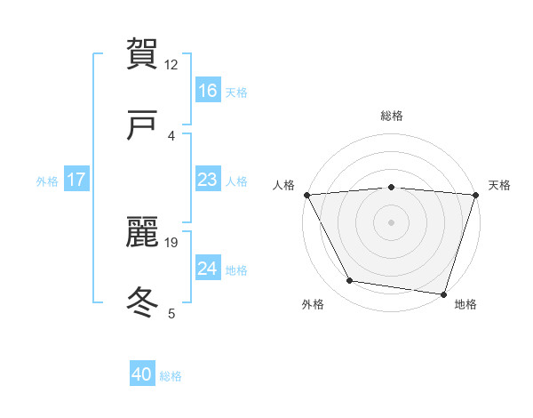 賀戸 麗冬さんの地格は24画の5点!