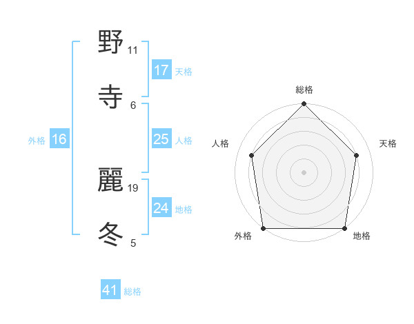 野寺 麗冬さんを姓名の画数から五運を鑑定