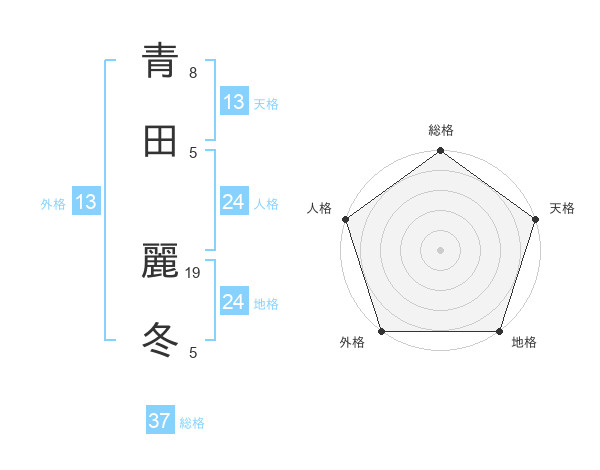 青田 麗冬さんの総格は37画の5点!